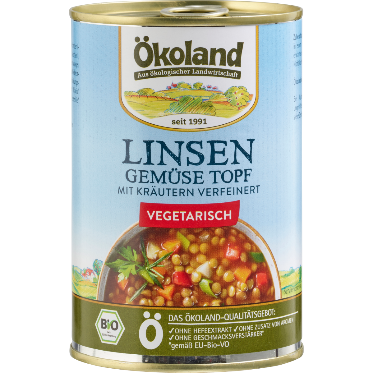 Linsen gehören zu den ältesten kultivierten Hülsenfruchtarten, sie stammen ursprünglich aus Vorderasien. Für das Rezept unseres kräftigen vegetarischen Linsen-Gemüse-Topfes verwenden wir die beliebten Teller-Linsen. Der Ökoland Linsen-Gemüse-Topf liefert dadurch wertvolles Eiweiß, das ihn besonders empfehlenswert für die vegetarische oder fleischarme Ernährung macht. Dazu geben wir extra viel Gemüse, wodurch sich der unverfälschte Geschmack dieses Ökoland Gerichtes entwickelt.