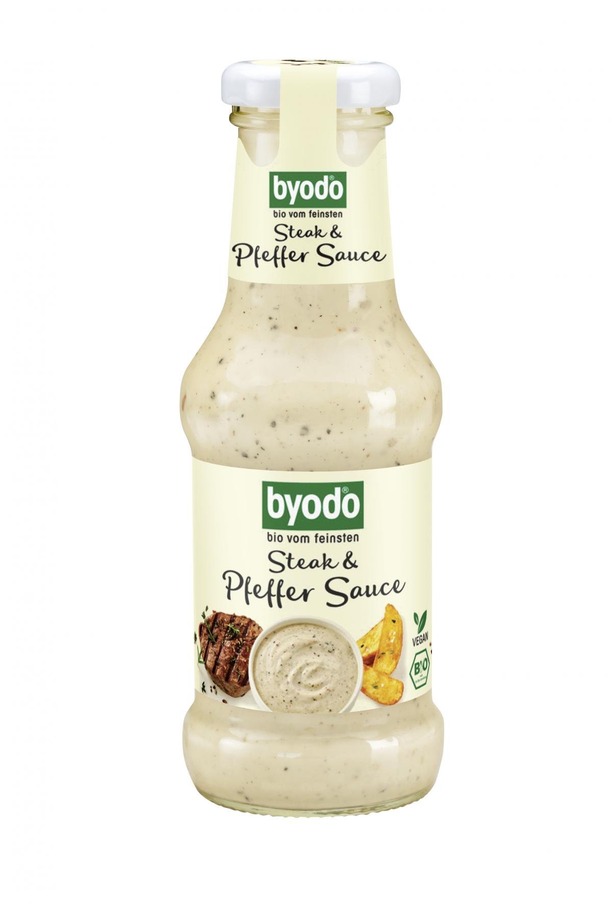 Die Steak & Pfeffer Sauce von Byodo ist der ideale Begleiter für Fleisch, gegrilltes Gemüse oder Kartoffelecken aus dem Ofen.